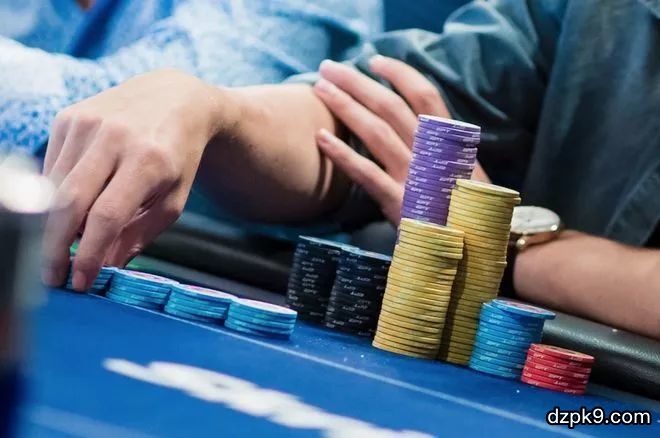 大多数时候AK击中卡顺,会是坚果听牌,这当然是采取激进线路的备选手牌,因为AK再往后也总是保有不错的底池权益。然而,如果我们总是选择激进的游戏AK,问题就显现了。
