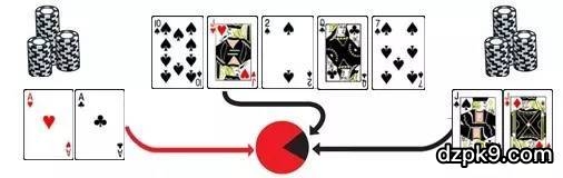 举个例子,我们有AA,翻牌前跟对手打到全进,对手是JJ。不幸的是对手击中暗三,赢下了这个大底池。