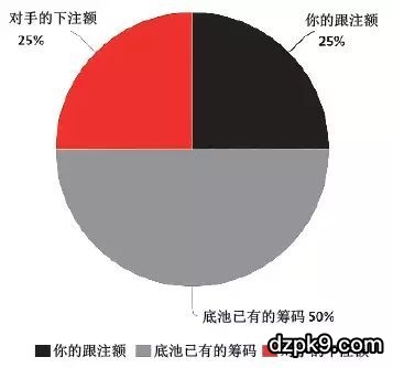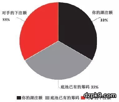 对底池赔率的考虑如同任何其他形式的赌博一样。你评估自己相比回报将要冒多大的风险。然后你估计自己预期获得回报的频率是多少。这两个比率的差异将导致长期的收益或亏损。