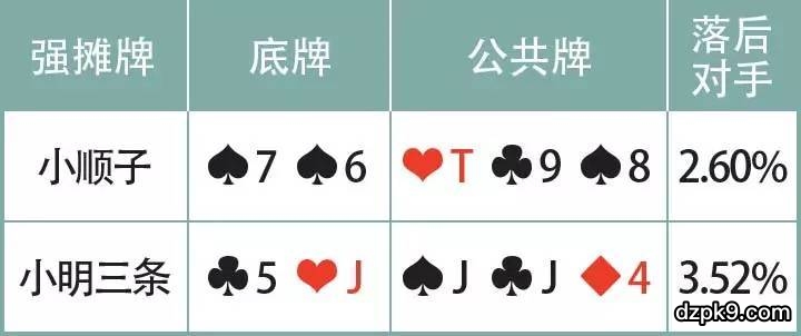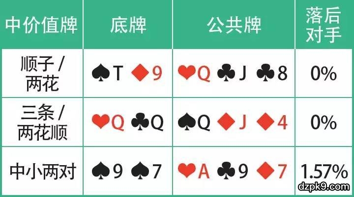 中价值牌:只是暂时领先,有可能再来1张牌就被逆转。