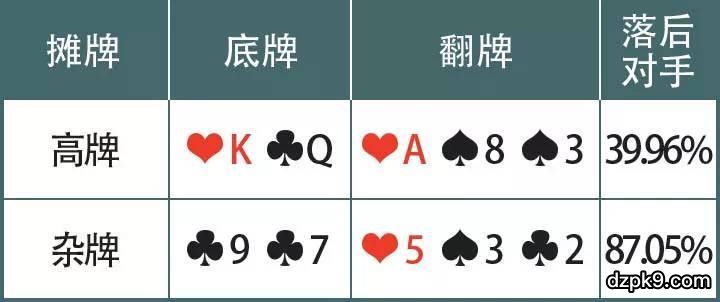 摊牌:不适合下注的摊牌牌型。