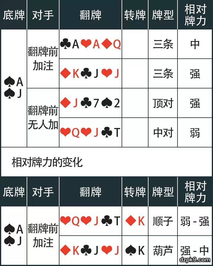 玩家要更注意的是相对牌力的变化,很多时候我们的绝对牌力增强了,例如: