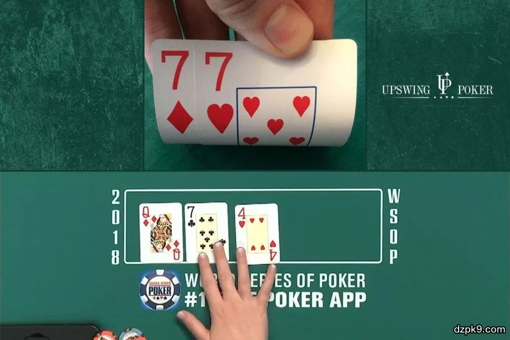 因此,你拿到一个小口袋对子,通常平跟入池是一个好主意。当然,如果你在后面位置,前面无人入局,做一个2-2.5BB的偷盲加注会更好。如果你错过了翻牌,那么过牌-弃牌即可。翻牌圈跟注一个大注,指望在转牌圈拿到暗三条,可不是什么好主意。