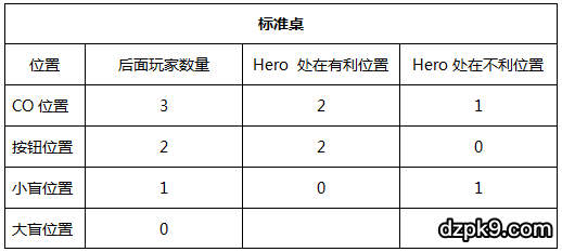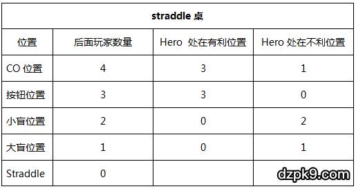 我们来看看标准常规桌和straddle桌CO位置、按钮位置和盲注位置的位置因素: