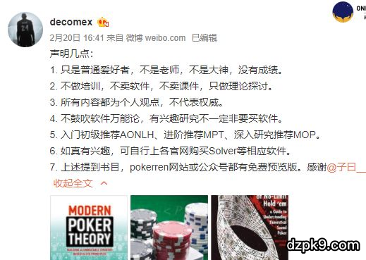 对于这个问题,知乎的网友@Demitasse针对性的写了回答。我们来学习下。同时在微博也做了自我介绍,我之前也转载过他知乎关于AI poker的文章,相信是一个对扑克非常热爱的爱好者。