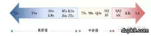 2.中等价值:这种牌很强,但是还没有强到可以翻牌前全压的牌。比如AQ是一手翻牌前的好牌,但是面对4bet很多时候只能弃牌。