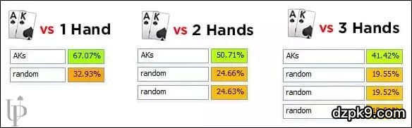 因为遇上一手强牌的可能性上升,相比在单挑底池,你的下注范围应该偏重于价值牌,只有较少的诈唬牌。