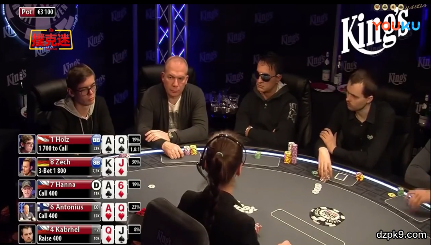 因为在翻牌后你的位置是最差的,所以在多人底池中,进入翻牌后你需要评估牌力是否足够支撑你进行下面几条街的行动。