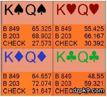 Pio不会犯用良好抓诈唬牌或弱摊牌价值牌(如果对手随后check可能赢得一个可观底池)诈唬下注的极化错误。即使在按钮玩家过度弃牌12%时用范围中每一手牌下注是正确的,用一些牌check也更有利可图。例如KK:
