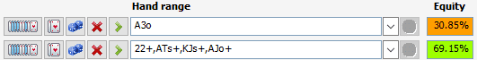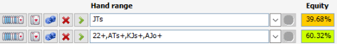 如你从下图所见,JTs对抗一个相当强的范围也有几乎40%的胜率。