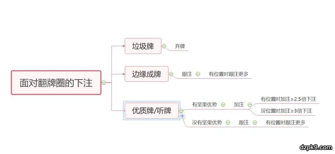 首先你要先判断,进入翻牌后,你的手牌现在是垃圾牌、边缘成牌还是优质牌或听牌。