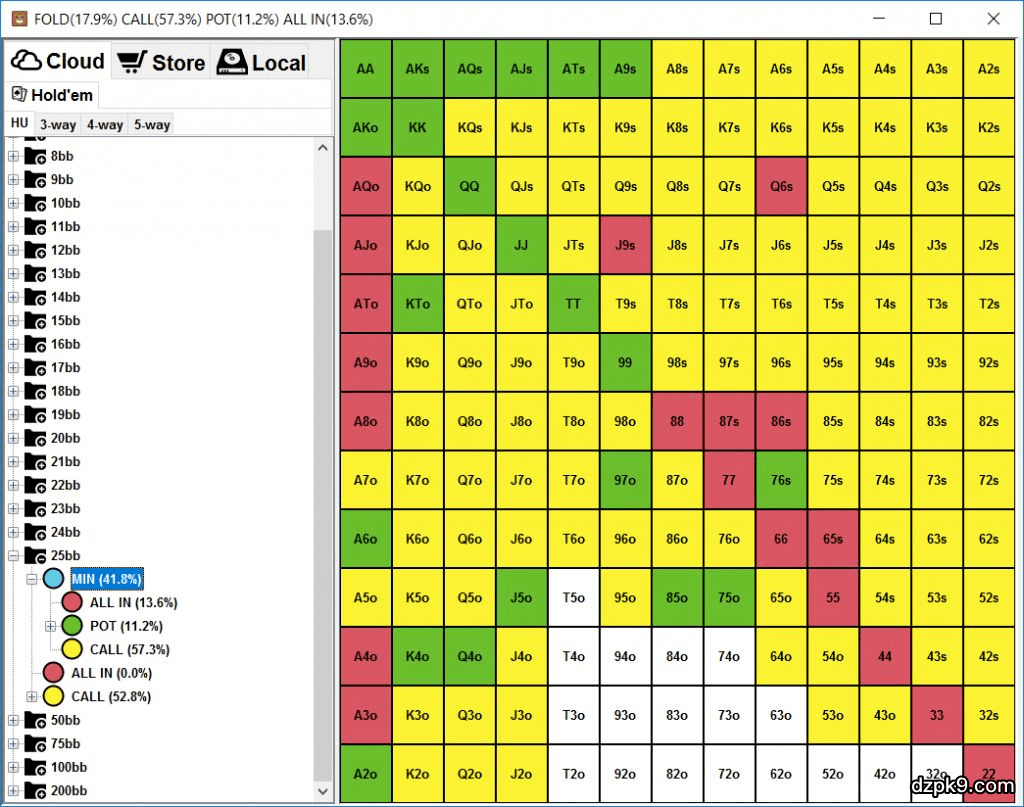 老实说,我从未用过Simple Postflop,但如果你想了解更多情况,你可以查看2+2论坛的这篇帖子。当GTO Range Builder首次发布时,我简要地看了一下,但我不喜欢它把解决方案存储在云服务器,而不是在我的本地电脑内。当你无法确切知道你仍然能够彻底使用解决方案时,进行仿真运算没有多少意义。