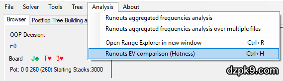 点击PioSolver中的节点未必很麻烦。首先,你可以按住CTRL键,然后点击上下光标键改变牌面大小,点击左右光标键改变牌面花色。或者你可以使用CTRL + H热键查看所有可能的发牌(runouts)。