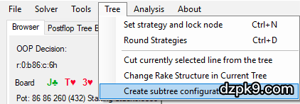 这是一个我往往在计算我采用的低频率、大底池、深筹码玩法时用到的功能。你对你的翻牌圈启发法(heuristics)感到满意,但你想要知道如何在转牌圈和河牌圈游戏那个范围的更多细节。你可以通过创建一个子树结构(subtree configuration)让整个仿真测验更精确。
