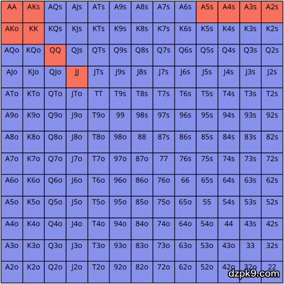 QQ、KK和AA就是这位玩家在翻前的入局范围。
