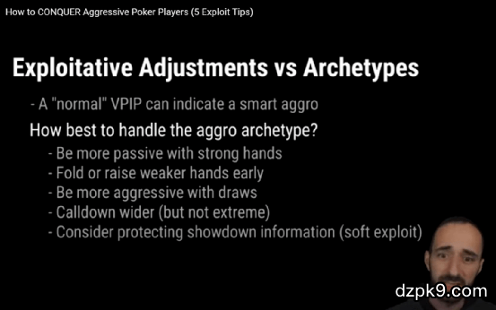 玩GTO有个很关键的概念,那就是在碰上打得激进的对手时,除非他们自身出现大纰漏,不然你用GTO通常就是只能回本而已。假如对手明显打得很凶,可你却还是不懂得偏离平衡做出正确的剥削,这种行为简直就是有钱不赚!