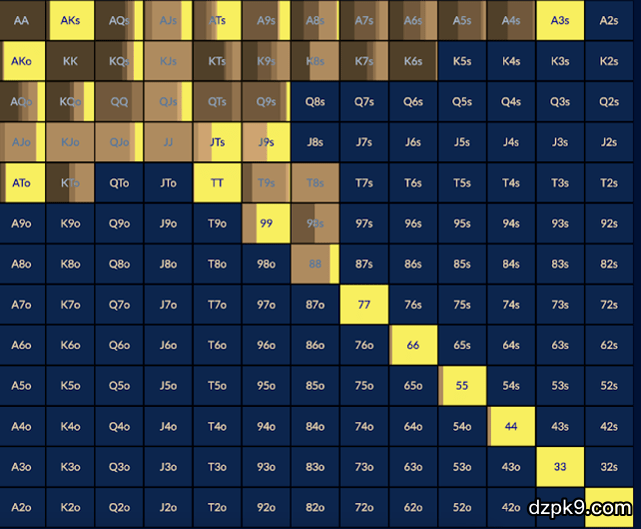 (黄色=过牌,浅褐色=小尺寸下注,深褐色=大尺寸下注)