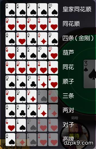 扑克成手牌等级排列