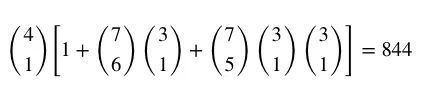 再考虑花色。在任选7张花色的所有组合里,一共有844种同花的可能。所以所有的组合减去构成同花的情况一共有: