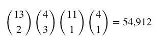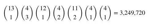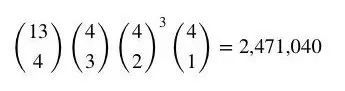但这些总数究竟是怎么算出来的?下面给出牌型总数的推导过程。其中使用了非常简单的排列组合/二项式知识。