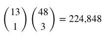 13张不同大小的牌选出4张,再从另外48张牌中任选3张。需要注意的是由于4张同样大小不同花色的牌已经全部选出,所以无需重新计算不同花色了: