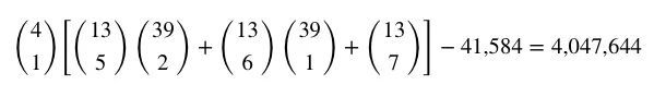 然后剩下4张牌,可以任意选择花色,但要减去其中有三种会和前面的三条凑成同花的情况:
