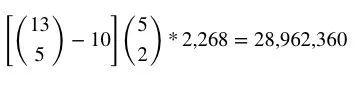 第二种5张不同大小的牌构成顺子,是两个两对与三张不同大小的牌。这里面有10种不同的牌型大小组合,但因为其中的两对可能有2、3、4种不同的花色,计算其中的同花比较复杂。首先,两对从5张不同大小的牌中选,所以可能的组合有: