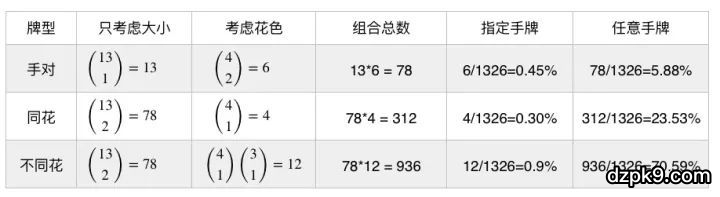 德州扑克起手牌型概率