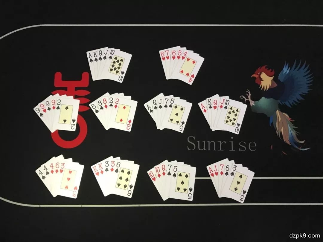 高牌:这个更不用说了,就是不同花色,又没有对子并且连不起来的牌。