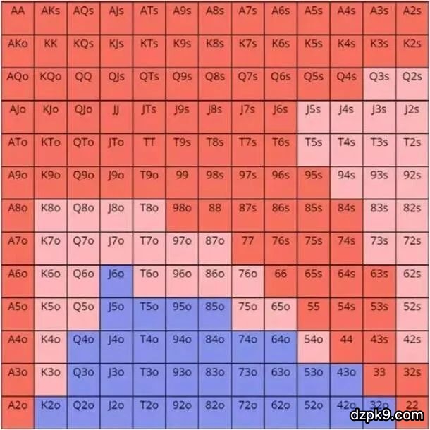 这种牌手比其他牌手更常见。你应该做出调整,在按钮位置做更多的率先加注。例如,你应该开始用下图中粉色部分率先加注: