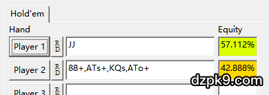 输入胜率计算器,我们发现,JJ面对这个范围,胜率是非常能打的: