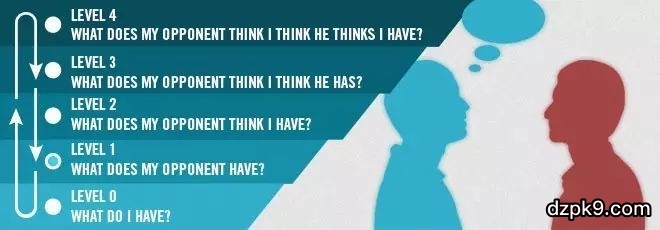 “熟人德州扑克”是另一个游戏,它的关键是思考层级。牌理在“熟人德州扑克”的世界变的再也不重要,甚至颇具迷惑性。在这个世界,人们开始大范围的比拼心理:我如何读你,我读你如何读我,我读你如何读我读你……这是一个对于我本人残酷的世界,但也有玩家认为这才是德州扑克的精髓和乐趣所在。在“熟人德州扑克”的世界,比拼的是心理,赛的是人。