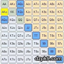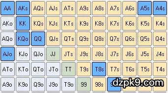 有位置时再加注中位(4.7%):AA-QQ, AJo, KQo,AKs, A5s-A4s,T8s, 97s