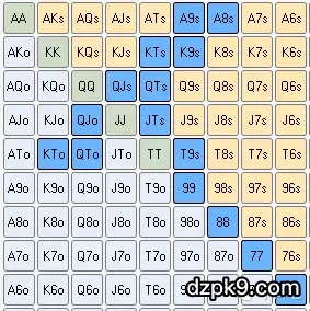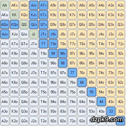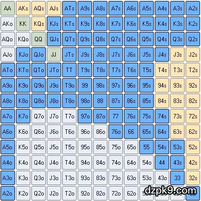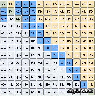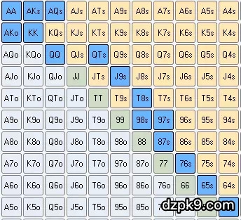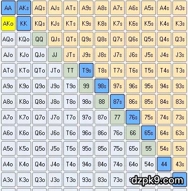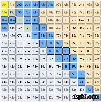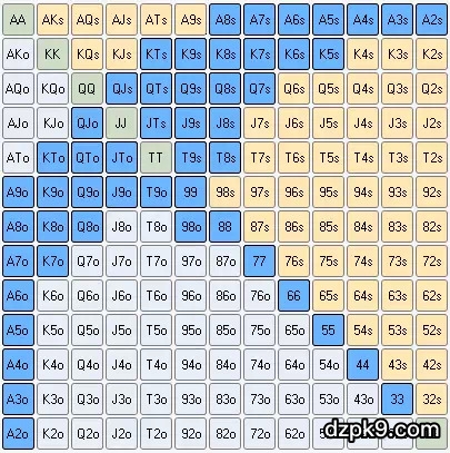 六人桌线上德州扑克翻牌前起手牌表(中)