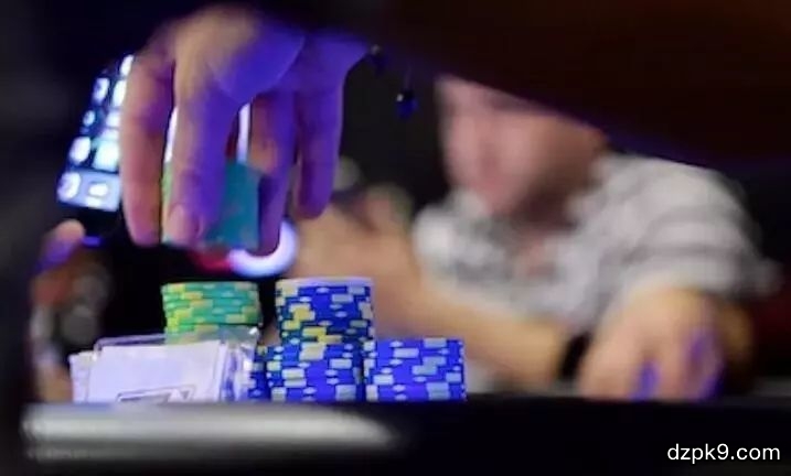 同时,按钮位用T♣9♣跟注了,他中了三条10。在这种牌面之下,按钮位会认为小盲位范围内是有诈唬的(比如KQ,KJ或随机的梅花牌),而且他也想从更差的牌(比如AX)拿到价值,所以按钮位是不可能弃牌的。