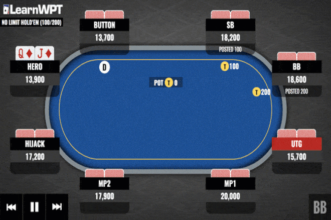 在本例中,转牌圈发出黑桃时,翻牌圈的一个跟注者向两个对手率先下注。这个范围往往包括许多黑桃同花,值得担忧。但是,因为我们知道大盲玩家的范围中存在其他我们可以打败的牌,我们得到了合理的底池赔率去跟注这个转牌圈下注。