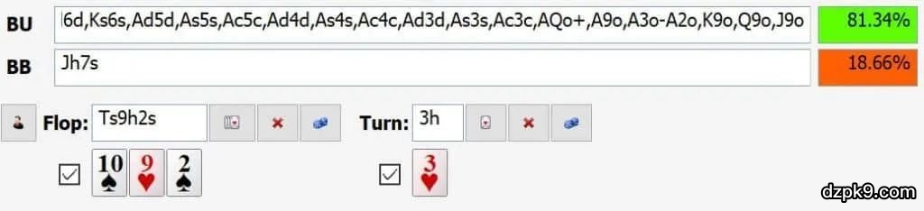 对于最后两手牌,我们将关注整个范围,而不是特定一手底牌。