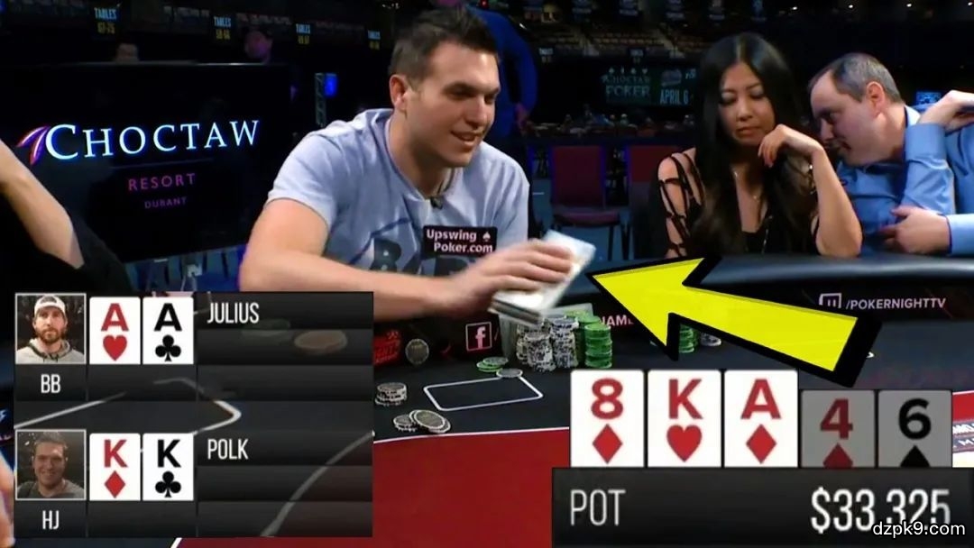 一般来说,KK这手牌是比较容易打的,但要是翻牌圈发出了一张A,可能有的人就会感觉不知所措了。当然,更绝的还是下面这种