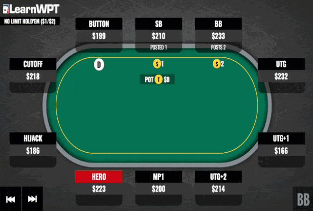 我们翻前跟注,然后在翻牌圈和转牌圈有正确的赔率去追逐听牌。我们最终错过了河牌,然后大盲玩家再次下注。