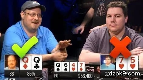 谁不爱翻牌圈击中暗三条的感觉?当这种情况发生时,你只需要思考如何榨取最大价值。但并非所有翻牌圈暗三条都是相同的。很多因素决定了你如何游戏暗三条。在本文中,我将解释如何在八种特定场合游戏暗三条(假定有效筹码量是100BB,无前注)。很简单:总是下注!下注是因为你有一手你想要尽可能做大底池的超高胜率牌。平均而言,过牌通常会导致赢得的底池比较小。例子:你翻前在CO位置用7♥7♣,大盲玩家跟注。翻牌是J♣7♠4♠。当大盲玩家过牌时,你应该总是用你的暗三条下注。这种情况稍微有点复杂。在这种场合的正确策略取决于两个牌手的位置,或者更准确的说,牵涉的范围是什么。当翻牌中有一张或两张大牌(broadway card,牌面不小于10的牌)时,你应该更具侵略性。但翻牌较小且连接性更好时,你应该玩得更狡猾一些,寻求过牌-加注。在牌面较大的翻牌面,你作为翻前加注者具有优势,这允许你频繁下注。而在牌面较小的翻牌面,冷跟注者(cold-caller)通常拿着大于翻牌的牌,这迫使你用一个受保护的范围对他们过牌。例子:你翻前在HJ位置用5♥5♠加注,然后CO玩家跟注。如果翻牌是K♠T♦5♦(T代表10),你很可能应该下注。如果翻牌是8♠5♣4♣,你应该过牌(然后用加注来对抗下注)。这种情况往往发生在你防守自己的大盲的时候。我们在这里将保持简单:总是过牌-加注!理由和场合1一样:你有一手你想使尽可能多的筹码进入底池的高胜率牌。有些人对这种玩法持有异议,特别是对手能够自己迅速做大底池(在转牌圈和河牌圈超额下注)的时候。但即便如此,过牌-加注比过牌-跟注更频繁会更好。例子:你在大盲位置用2♠2♦防守CO玩家的加注。翻牌是9♠8♦2♥。你在这种场合应该寻求频繁过牌-加注。如果你看了前面我的解释,你可以猜到我要写什么:总是加注。你应该为拿下一个超大底池尽可能做大底池,不管有没有打到摊牌。例子:CO位置玩家加注,你在按钮位置用6♠6♣跟注。翻牌是J♠8♣6♥。如果CO玩家下注,你应该加注。如果他过牌,你应该下注。和之前一样,你通常应该用你的强牌下注,做大底池。但是,在有些情况中你应该随后过牌。具体地说,当翻牌较小且连接性很好时(比如8-6-5双色翻牌面),考虑随后过牌。在这些翻牌面,跟注3bet的牌手有很大优势。因此,你应该(至少一部分时候)用88或66这样的牌随后过牌。例子:HJ玩家加注,你在CO位置用88 3bet。如果翻牌是K♥8♦7♠,你应该在对手过牌时总是下注。但是,在8♠6♥5♦这样的翻牌面,你应该为了保护你的范围和引诱对手在后续回合下注以一定频率随后过牌。在不利位置游戏总是比较棘手。你应该大多数时候下注,除了一些对跟注者有利的翻牌面。当翻牌面对跟注者有利时,你应该倾向于采用一种更被动的玩法。我们讨论之前提到的翻牌面类型——牌面小且连接性很好的翻牌面。在这类翻牌面你应该以很高的频率过牌,因为有利位置牌手可能拿到你无法拿到的暗三条(如66、55、44等等)。例子:CO位置玩家加注,你在小盲位置用7♠7♦3bet。如果翻牌是J♠7♣2♦,你应该下注。但如果翻牌是7♣5♣4♠,你应该频繁过牌。你可能会感到惊讶。跟注翻前3bet后,你应该在面对翻牌圈持续下注时主要跟注。通过只是跟注,你保护了你范围中较弱的部分,且可以更高效地在转牌圈游戏。你可能在湿润公共牌面对转牌圈下注过牌-加注全压,或者在公共牌面看起来不怎么危险的时候再次机警的跟注。例子:你在按钮位置用88加注,然后跟注小盲玩家的3bet。翻牌是J♠8♥3♠。你应该倾向于在这个翻牌面过牌-跟注。在最后这个场合中你应该每次都过牌-加注。你坐在不利位置,你意味着你具有一种策略上的劣势。有利位置牌手对于每回合过后的底池大小有更多的控制权。因此,你应该每次都用你的最强牌过牌-加注及一些半诈唬牌。你甚至应该用一些中等牌过牌-加注,以拒绝有利位置牌手用其范围中的较弱部分实现底池权益(equity)。例子:你在HJ位置用99加注,然后跟注按钮玩家的3bet。翻牌是Q♠9♣7♠。你在这种场合应该寻求过牌-加注。这是一个教你如何游戏翻牌圈暗三条的速成课程。本文应该可以帮助你在几乎任何场合做出正确决定。