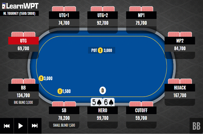 这种场合是少数翻前跟注者在翻牌圈具有明显范围优势的场合之一。