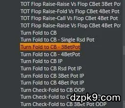 我们可以添加的第二个数据是 "Turn Fold to CB-3BetPot" 。这个数值统计的是玩家面对转牌的下注弃牌的概率。如果对手跟注持续下注的频率很高,但是对转牌下注弃牌的概率也很高,那说明他很可能容易在转牌认怂。这个统计值很高的话,你也可以增加在翻牌持续下注的次数。