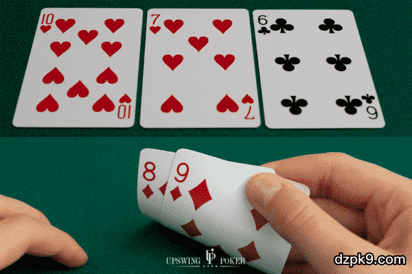 在这些情况中,我们百分百应该在翻牌选过牌-加注。再重复一遍:翻牌中顺后,百分百应该在大盲位走过牌-加注的路线。