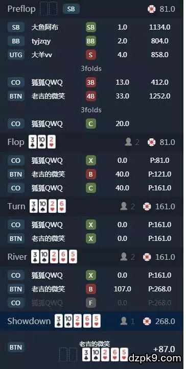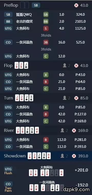 第二手,我的评语是:拙劣的诈唬对上不会读牌的对手。