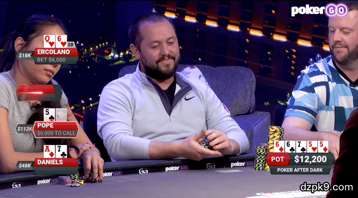 Daniels随后也扔掉了他的A7。Pope请求看Ercolano的底牌,并称他欠Ercolano一个人情。这意味着如果Ercolano下次要求Pope亮牌,Pope也会亮给他看。Ercolano欣然应允,随后亮出他的底牌。/uploads/allimg/251204/00300514W-6.jpg