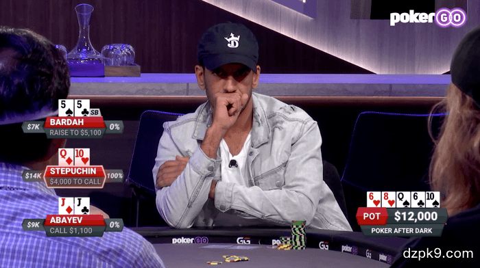 值得注意的是,“大嘴”Mike Matusow和London Tice本季首次列席《深夜德州》,而Marle Cordeiro和Ronnie Bardah重新回归。以下是本集《深夜德州》的一些精彩瞬间。在第一集取得巨大成功的Alex Ding似乎是《深夜德州》的一个最大赢家。但他在本集却开局不利,很早就输掉了一手筹码。翻前Matusow用Q♦ 10♦加注到300美元,随后行动的Ding用Q♠ J♣ 3bet到900美元。然后Tice在按钮位置用K♥ J♥ 4bet到2000美元。Matusow弃牌,Ding跟注。翻牌是J♦ 5♥ 2♣。Ding只剩约8000美元筹码,底池已经有4550美元。Ding过牌,Tice下注1200美元,Ding全压。Tice跟注,但他承认,他“有点害怕”。两人同意发牌两次。第一次发牌是5♦、2♦;第二次发牌是8♣、8♥。最终Tice凭借踢脚更好的对子赢得了一个20450美元的大底池。因为有一个200美元的Straddle,Stepuchin在枪口位置用K♠ K♥率先加注到700美元,他左边的Ilyas Abayev(J♥ J♦)和大盲位置的K♣ Q♦跟注。翻牌是9♦ Q♠ 3♣,Stepuchin持续下注1300美元,两个对手都跟注。转牌是6♥。Stepuchin下注3500美元,Abayev弃牌,Bardah跟注。河牌是2♠。Stepuchin嘟嚷了几句,然后全压6950美元。Bardah想了一会儿,然后跟注,眼看他的对手收下一个20300美元的大底池。Abayev在枪口位置用J♥ J♠率先加注到300美元,随后行动的Cordeiro用10♠ 10♦跟注,然后Bardah在按钮位置用K♥ 10♥跟注。Tice在小盲位置用7♥ 2♦压榨加注到2100美元。Abayev跟注,而Cordeiro全压8975美元。其他人都弃牌,轮到Abayev行动,他似乎有点纠结。他边想边摇头,但最终决定跟注。两人同意发牌两次。牌堆中只剩一张10♣可以帮到Cordeiro,但这张牌在第一轮发牌就出现了(公共牌是10♣ 4♠ 5♦ 6♥ 7♠)。但Cordeiro输掉了第二轮发牌,因此两人最终平分了底池。前面玩都弃牌,Stepuchin在按钮位置用10♣ 6♣加注到700美元。Abayev用9♣ 7♣跟注,但大盲位置的Cordeiro拿到了A♦ A♣。她3bet到2800美元,随后Stepuchin 4bet到130000美元。Abayev迅速弃牌,而Cordeiro用剩余8800美元轻松跟注。“哈,我还以为你拿着72”,Stepuchin说。因为根据约定的规则,任何人用72赢得一个底池将从所有其他人那儿获得一笔赏金。翻牌是6♦ 2♠ 3♦,拿到顶对的Stepuchin仍然落后。“至少没有草花,”Corderio说。她的乐观是必要的,因为转牌是9♥,河牌是5♠,Stepuchin完全错过了这两张牌。最终Corderio笑纳一个约24000美元的大底池。因为前面有个200美元的straddle,拿着J♦ J♣的Abayev在枪口位置加注到600美元。小盲位置的Bardah用5♠ 4♣跟注,然后Straddle位置的Stepuchin用Q♦ 10♥跟注。翻牌是6♥ 8♥ Q♦。三人都过牌。转牌是6♣。Bardah下注800美元,其他两人立即跟注。河牌是10♠。Bardah拍了拍桌子表示过牌。Stepuchin下注1100美元,Abayev迅速跟注,随后Bardah加注到5100美元。“哇,”Stepuchin不由得大叫一声,随后开始喃喃自语。尽管如此,Stepuchin还是无奈地掷入一枚筹码,表示跟注,说了句:“你赢了”。”Bardah回应道。“不,你赢了。”