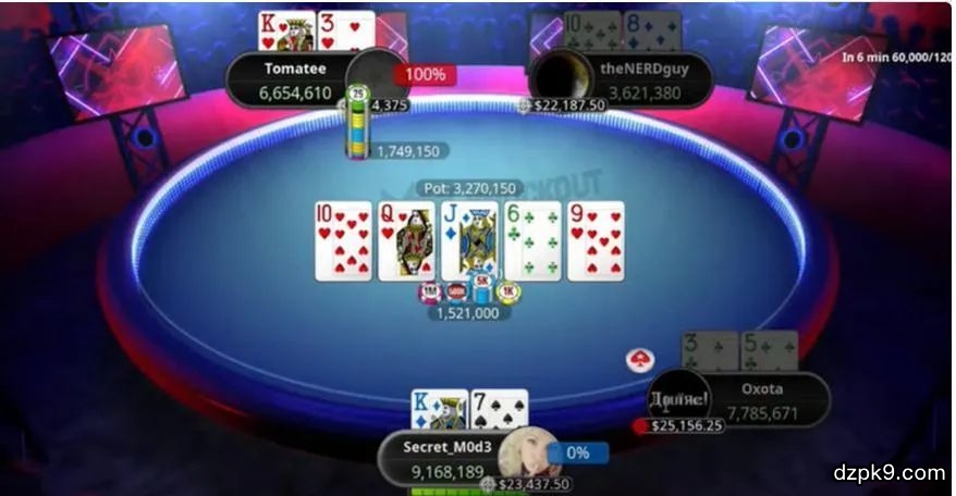 盲注级别50,000/100,000,前注12,500,Martins和Dvoress弃牌,小盲的Sammartino和大盲的Benitez仍在游戏中,两人记分牌为950万和900万。