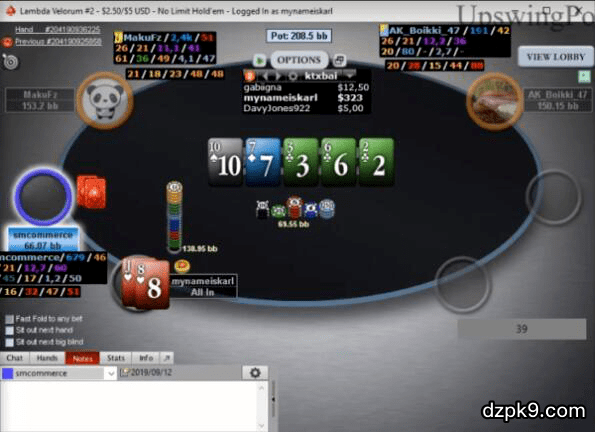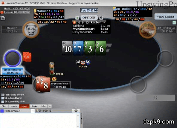 Smcommerce用9♥ 9♣跟注,赢下底池。