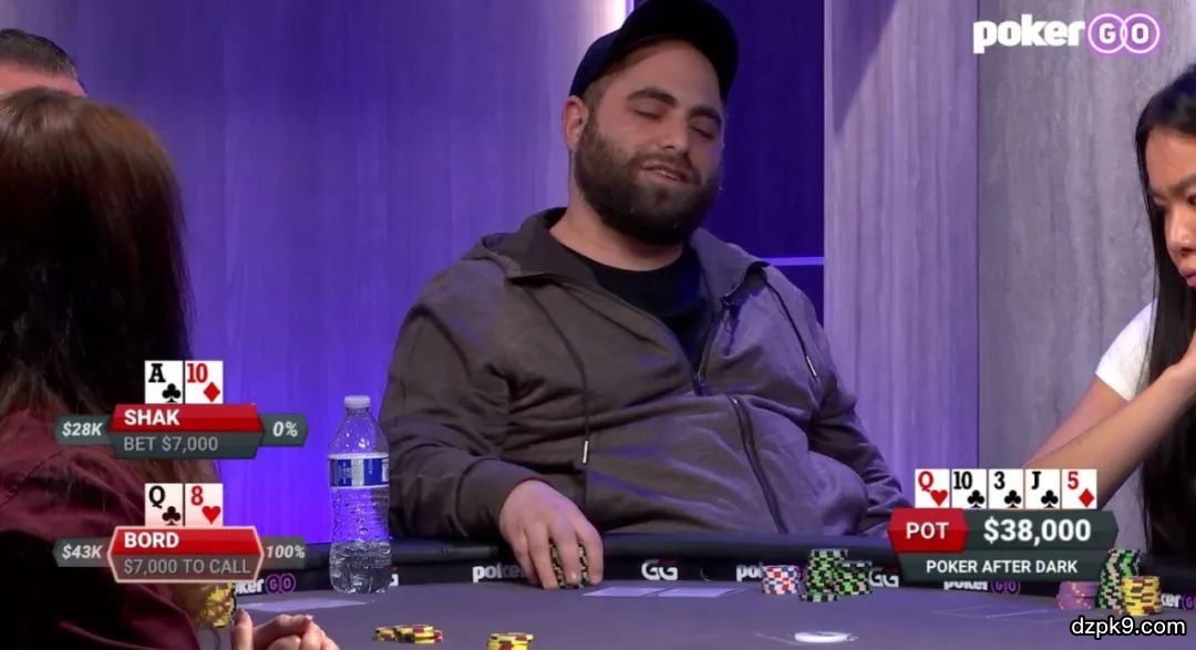 Shak和Pope过牌,Bord开火下注,下注尺寸几乎等于底池大小,即$10,000。Pope迅速弃牌,但Shak选择跟注。此时底池大小:$31,000