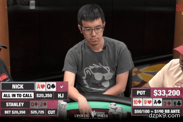 作为一个娱乐玩家,能打成这样确实不错,而Nick弃牌后,Tang应对手请求把他的QJs亮了出来。